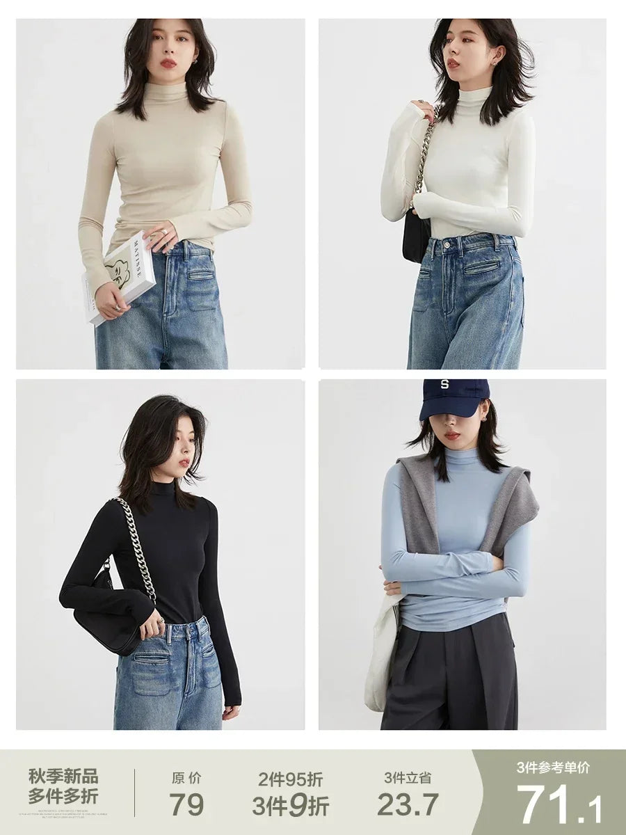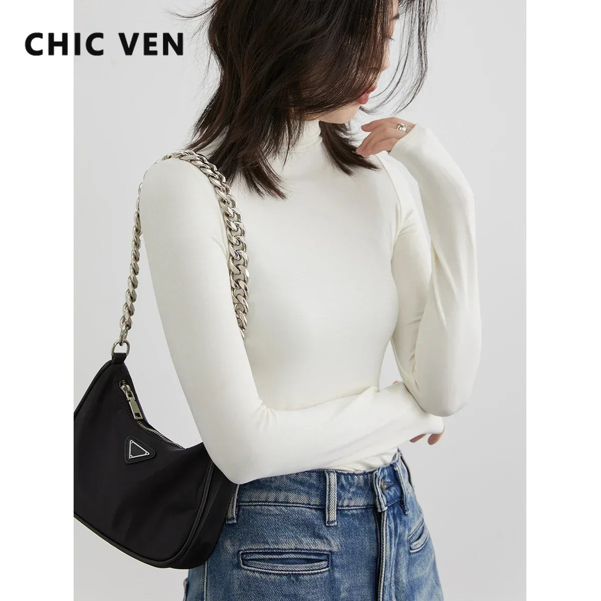 CHIC VEN Women's T-shirt New Multi Color Woman Tees Base Shirt Slim Fit Female Tops Office Ladies Clothing Spring Autumn 2023